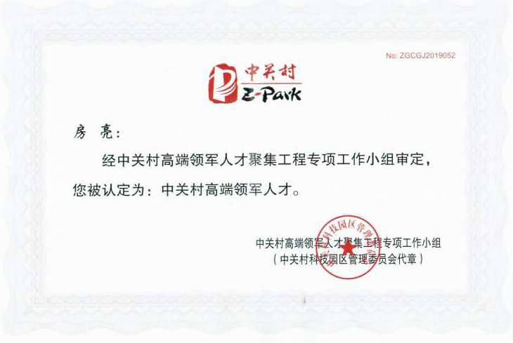 这一次房亮博士获得2019年度中关村高端领军人才的殊荣,不仅是对房亮博士创业领军能力的认可,也是对国科深圳赖俊农业发展有限公司未来发展的认可。